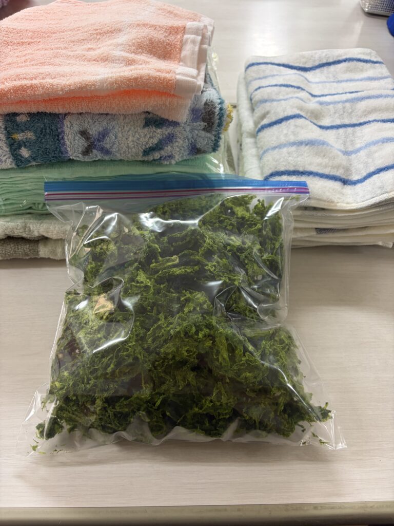 タオル、バスタオル、あおさを届けてくださいました。いつもご支援ありがとうございます。