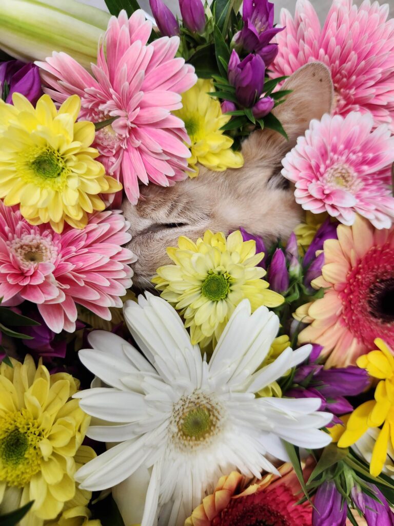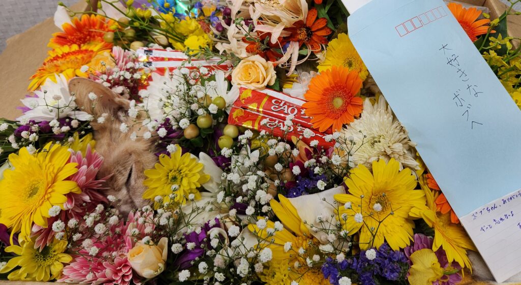 人気者だったボブ … みなさんから沢山のお花、おやつ、おもちゃそしてお手紙が届きました。